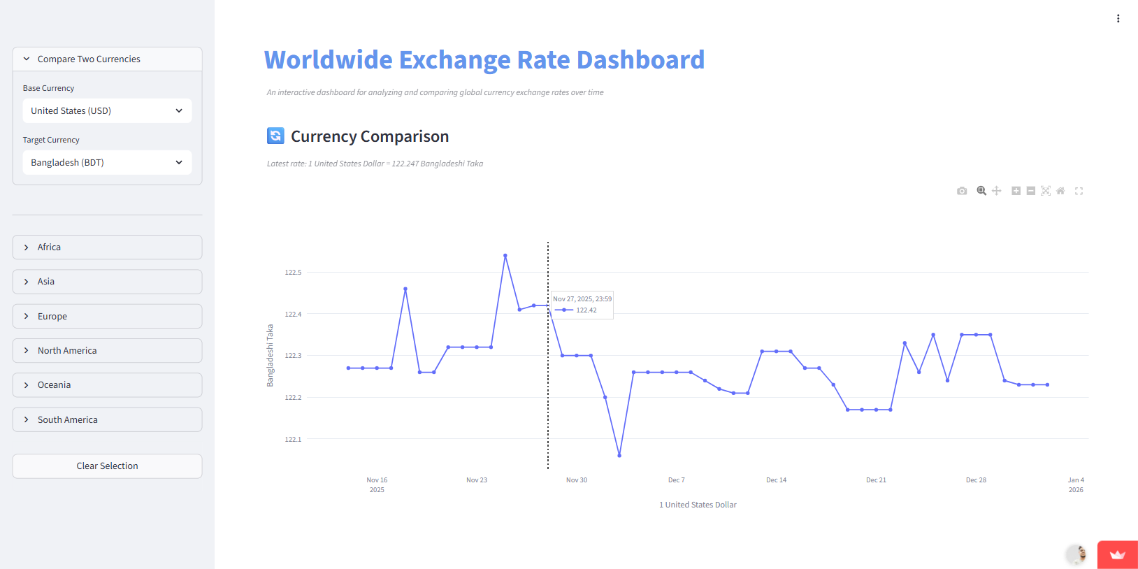 A data visualization application for tracking and comparing global currency exchange rates