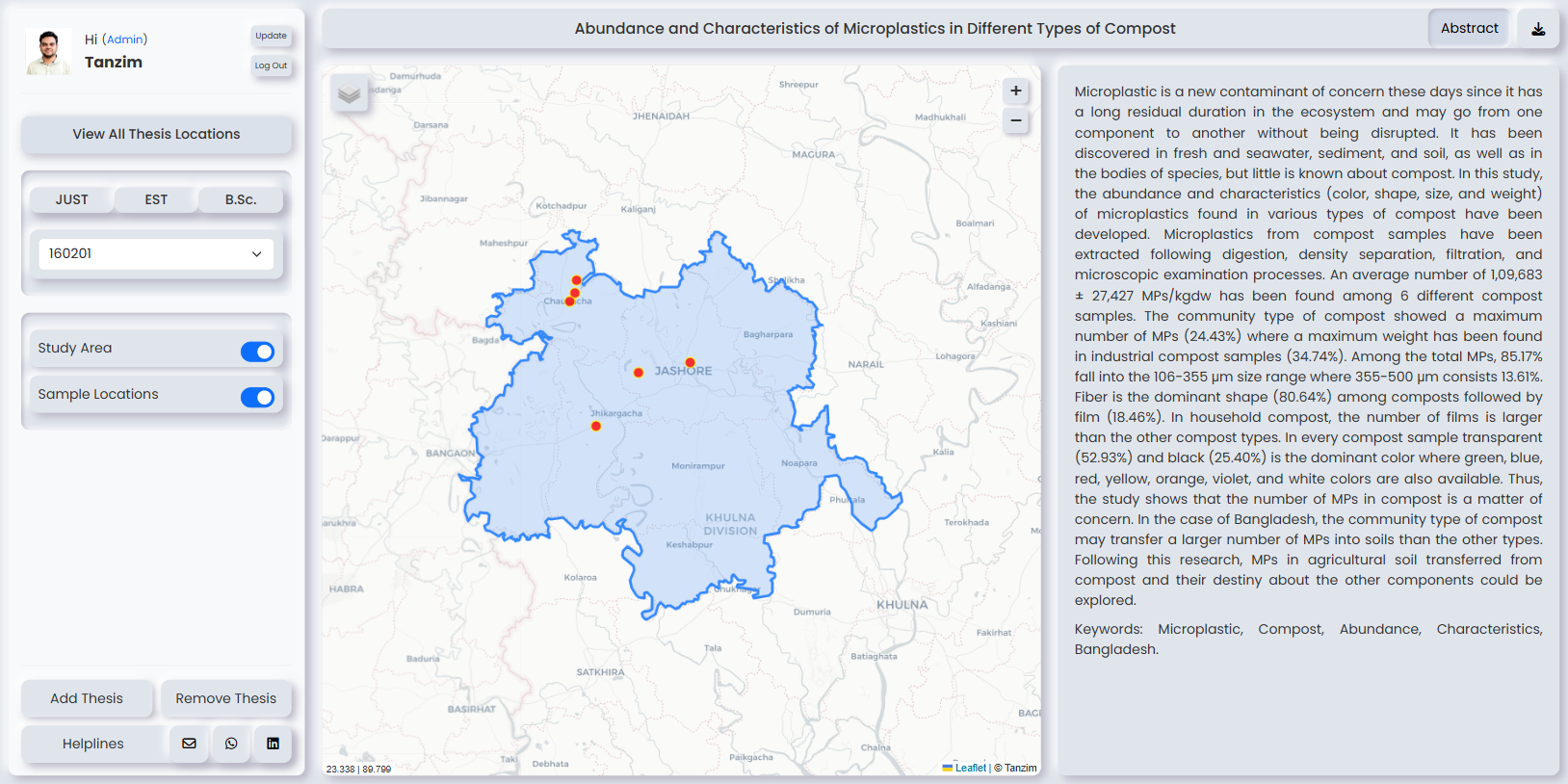 A central platform for managing and visualizing thesis projects with geospatial data
